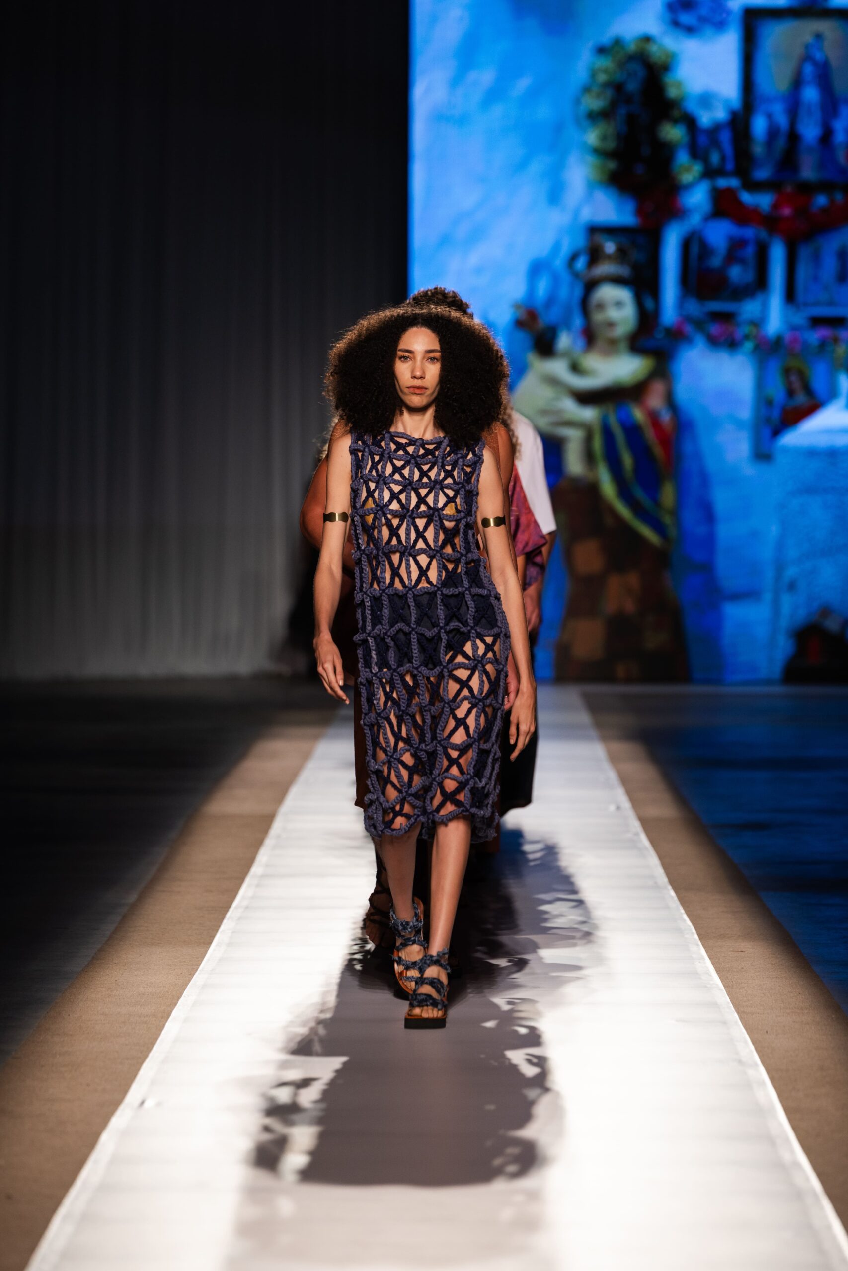 Gabriele Duarte, da Boana Jeans, encenava um desfile que é espelho: moda que dialoga com o mercado, mas sem esquecer o afeto do fazer manual. Ana Beatriz Ribeiro, da Açude, abriu as gavetas da própria história e espalhou sobre a passarela as rendas, as cores e os cheiros de Juazeiro do Norte, sua terra de encantarias.