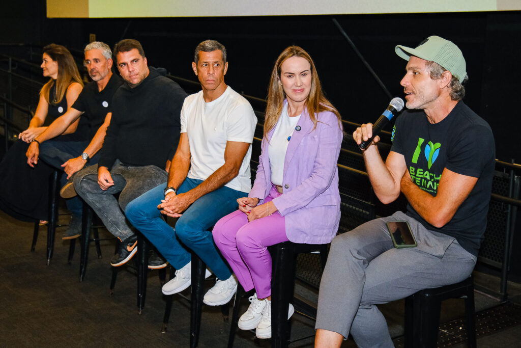 No último domingo, 7 de dezembro, o lançamento do documentário “Uma Praia no Quadradinho – A História do Beach Beach Tennis no DF” virou mais do que uma estreia na tela do cinema do Casapark: transformou-se em um grande encontro da comunidade que ajudou a construir mais um dos capítulos dessa história que já é tão brasiliense. Apesar da chuva que caía lá fora, o clima dentro do auditório era de celebração. Antes mesmo de o filme começar, os 160 convidados foram recebidos com pipoca e refrigerante para curtir um Talk comandado pela jornalista e influencer de Beach Tennis Naná Ferro, que rapidamente colocou todos na mesma sintonia, diante de uma conversa franca, descontraída e cheia de insights sobre o passado, o presente e o futuro do esporte no mundo, no Brasil e, sobretudo, no Distrito Federal.